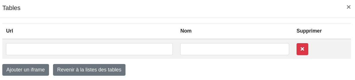 Permet de compléter le tableau de bord avec une datavisualisation en entrant son url et en lui donnant un nom.