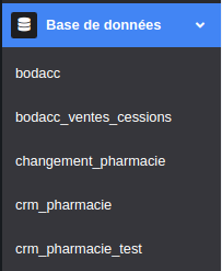 Les tables disponibles dans le menu latéral apparaissent ainsi :