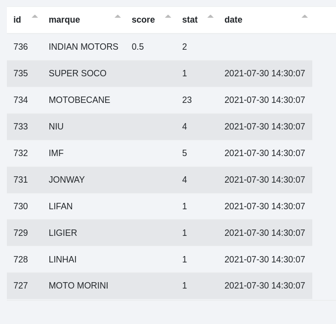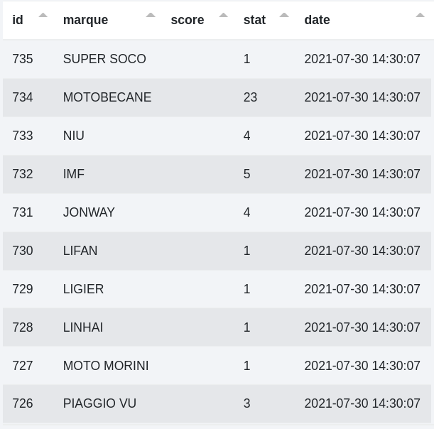 Un tri décroissant sur la colonne "stat" donnerait ceci :