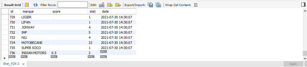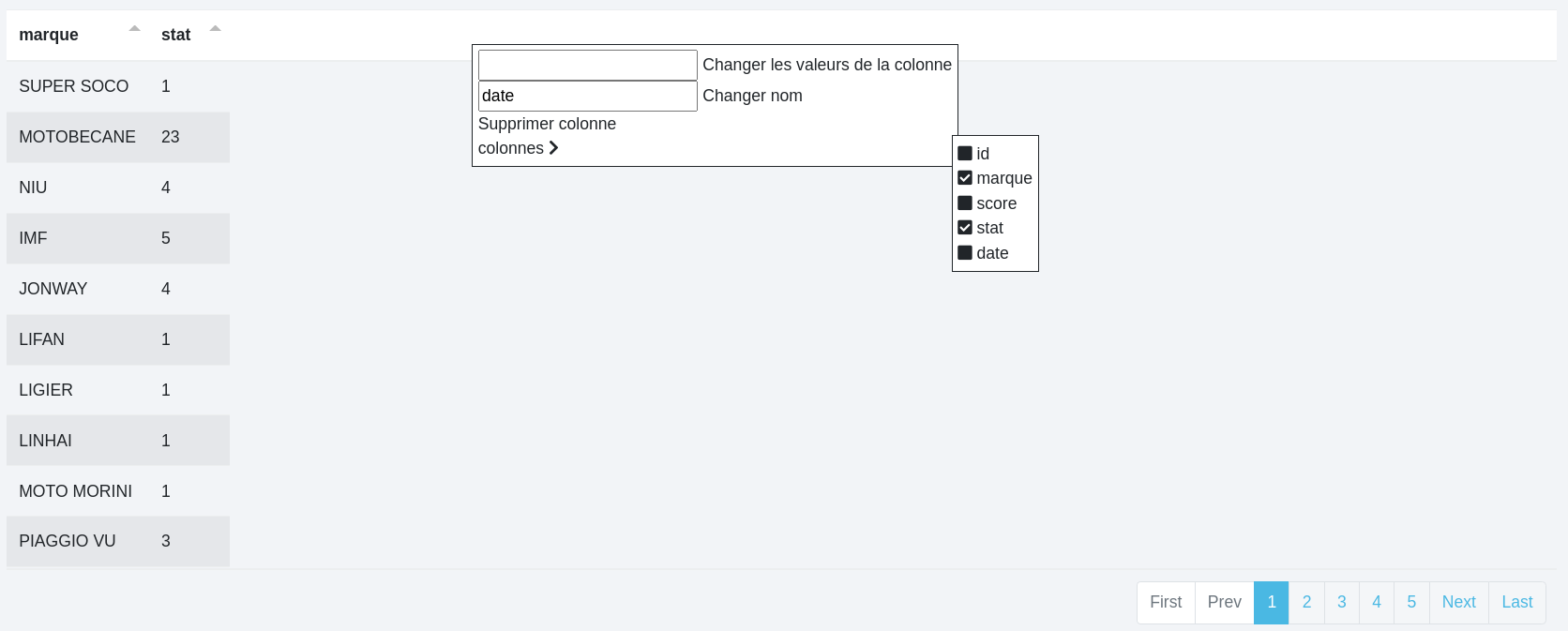 Par exemple ici, seules les colonnes "marque" et "stat" sont conservées.