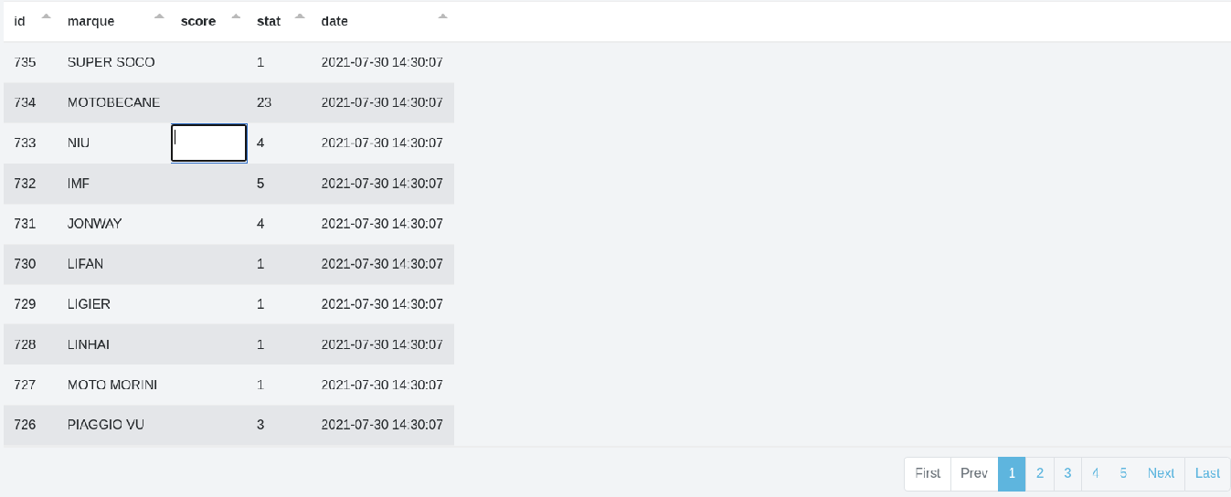 Par défaut, seules les 100 dernières lignes de la table sont chargées. Elles apparaissent par page de 10 lignes.