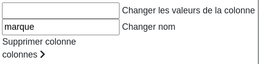 Ici, la colonne "marque" sera modifiée en "Marque" après avoir cliqué sur "Changer nom".