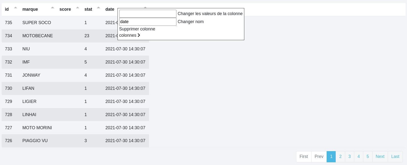 Par exemple ici, la colonne "date" sera supprimée après avoir cliqué sur "Supprimer colonne".