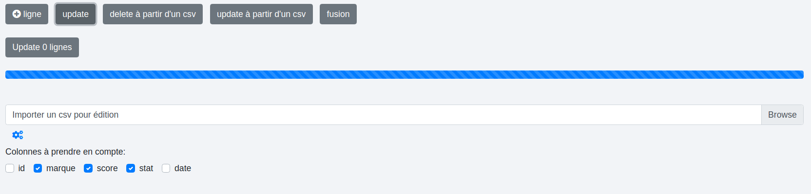 Il faut tout d’abord importer un fichier csv puis cliquer sur pour mettre à jour la table.