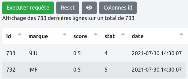 Les valeurs de la colonne "score" passent à "0". Attention! Ces changements ne sont pas encore enregistrés en base de données. Pour ce faire, une dernière étape est nécessaire en cliquant sur le bouton