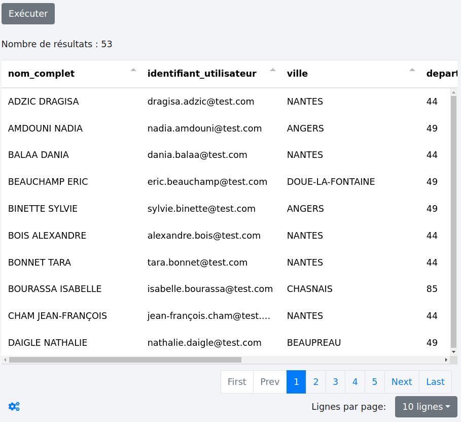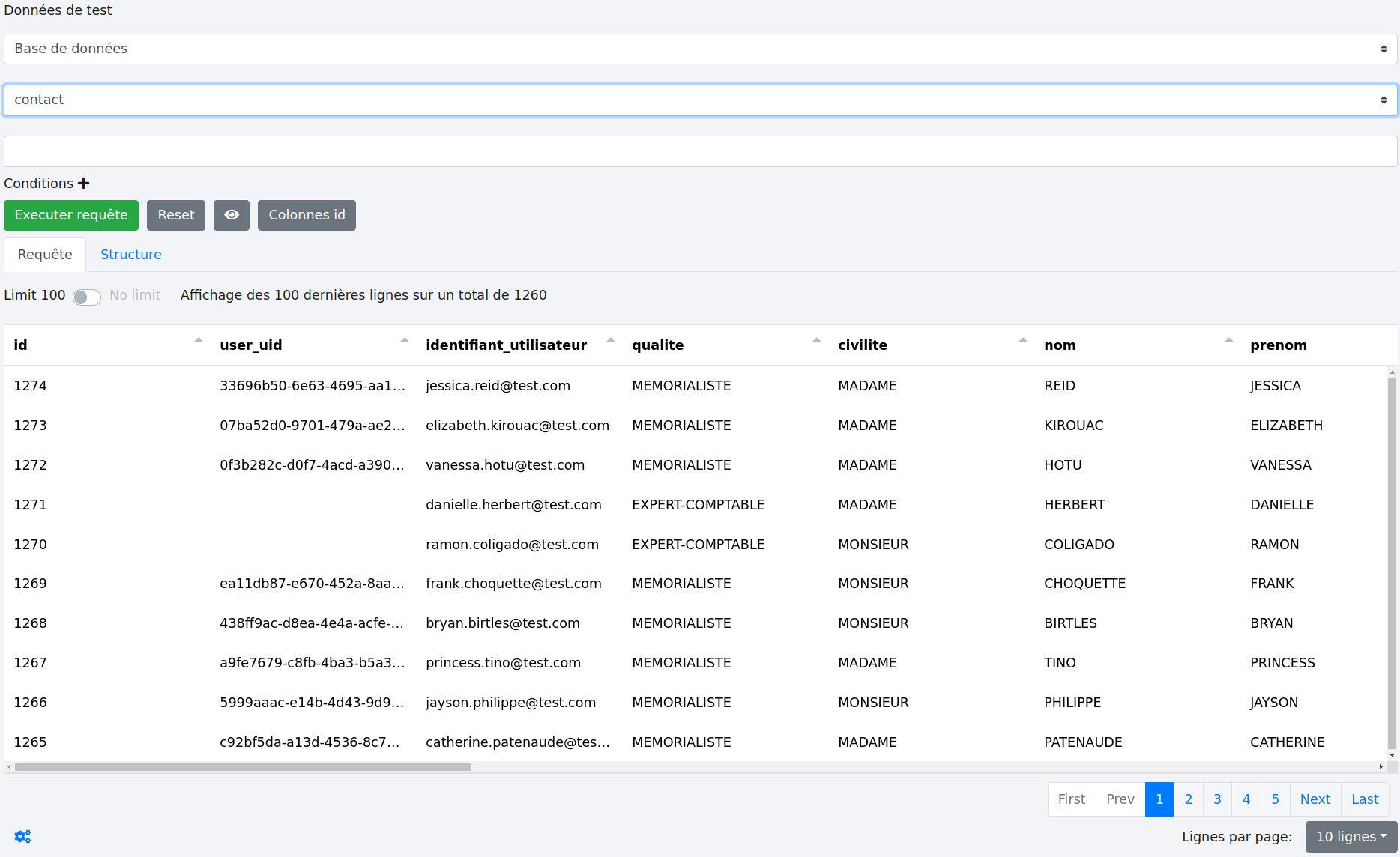 Par exemple, nous avons cette table "contact" regroupant les informations de contact des utilisateurs dans les données de test. (Rendez-vous ici pour savoir comment utiliser des données de test.)