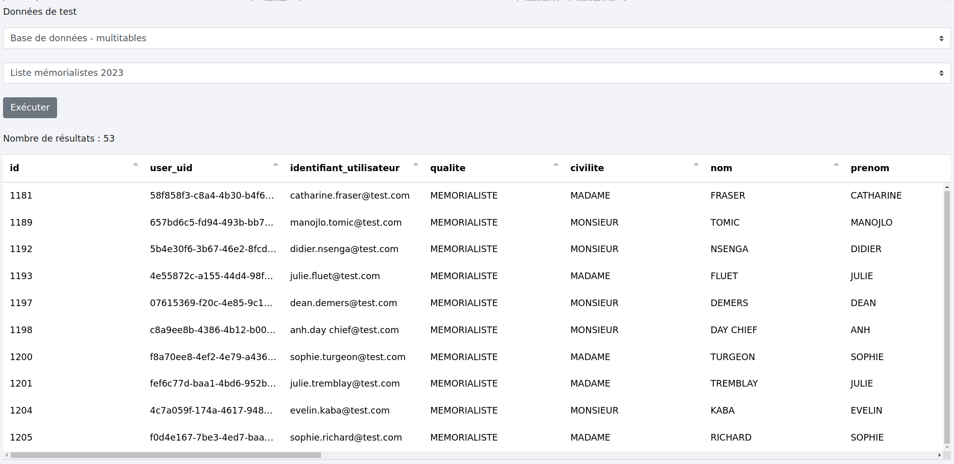 Sélectionnez la vue souhaitée, ici nous prenons la "liste des mémorialistes 2023". Attention à ce que les noms des variables correspondent bien aux noms des colonnes.