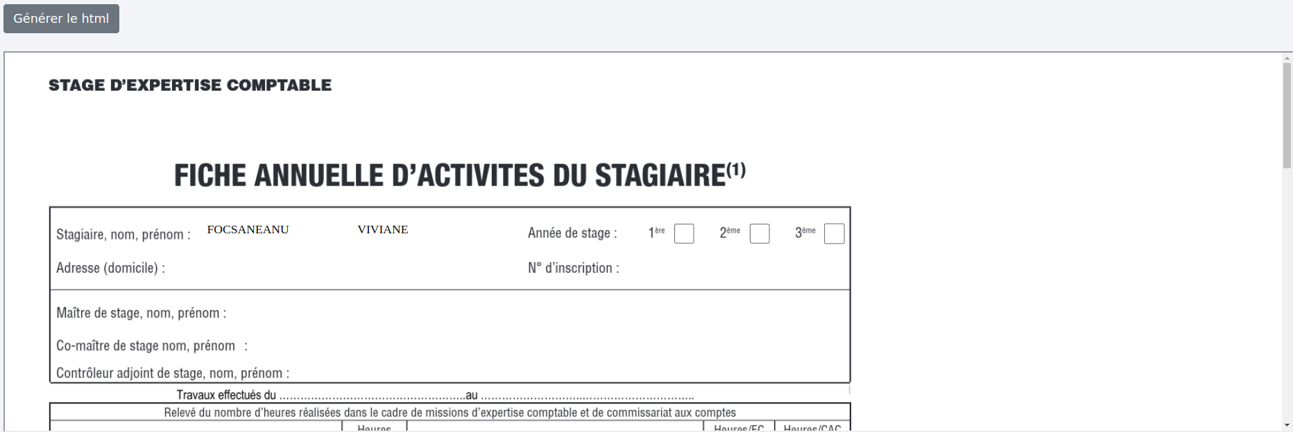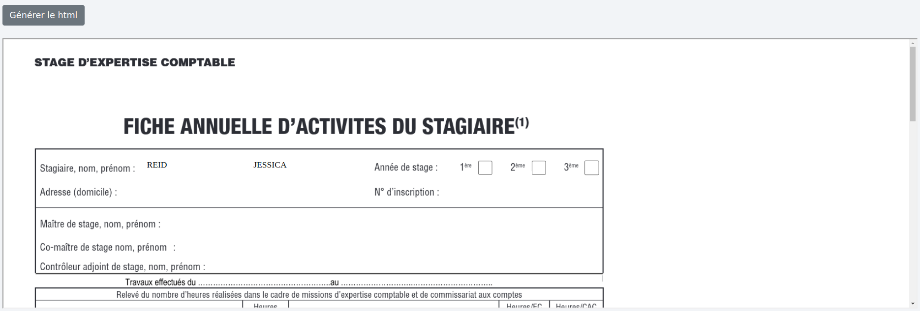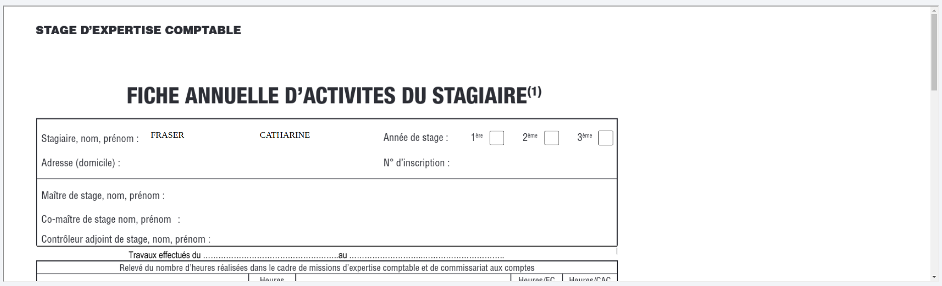 Prenons l’exemple de l’année de stage dans la fiche annuelle d’activités.