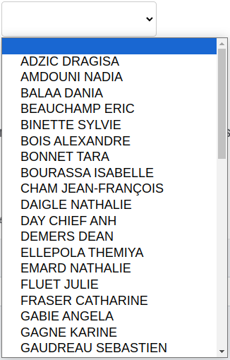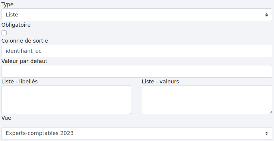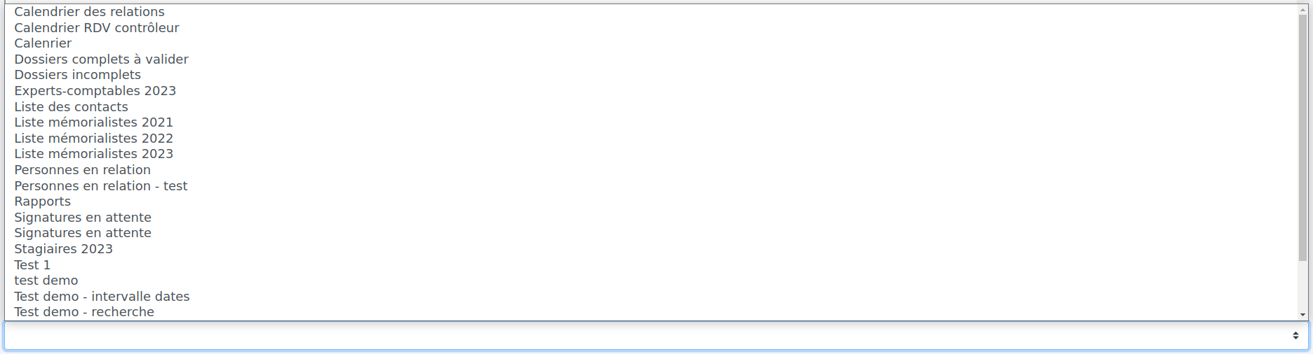 Prenons l’exemple d’une liste regroupant les experts-comptables dans laquelle l’utilisateur doit sélectionner son maître de stage. Nous appelons la vue "Experts-comptables 2023".