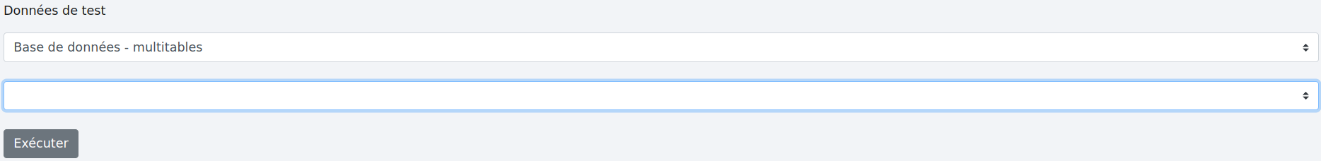 Sélectionnez "Base de données" dans le menu déroulant des données de test. Un second menu déroulant apparaît, vous permettant de choisir votre table.