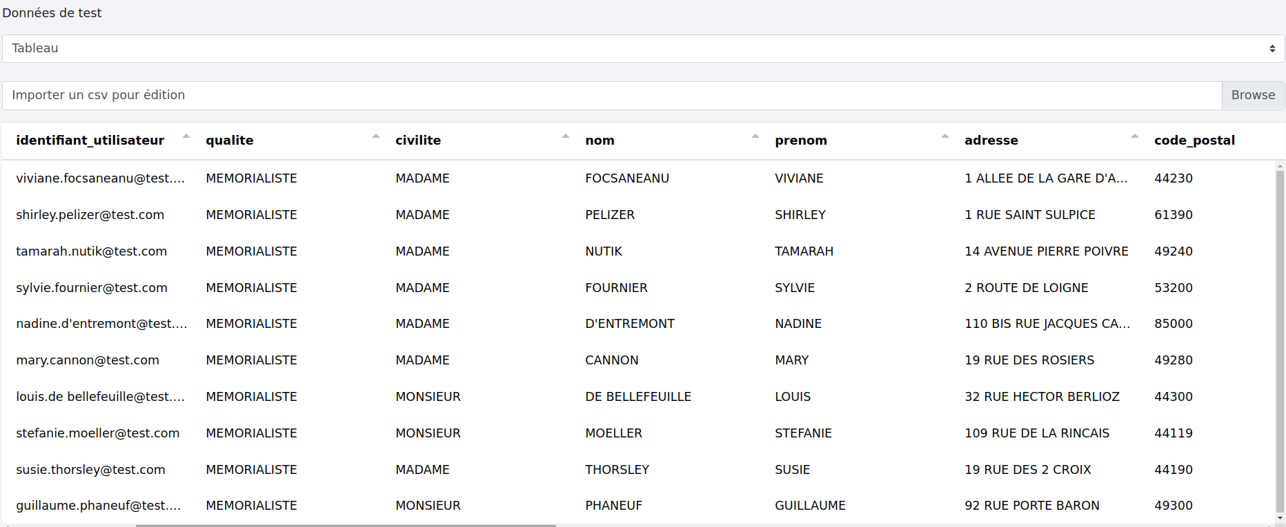 Puis cliquez sur "Importer un CSV pour édition" et sélectionnez votre fichier. Les données sont alors chargées.