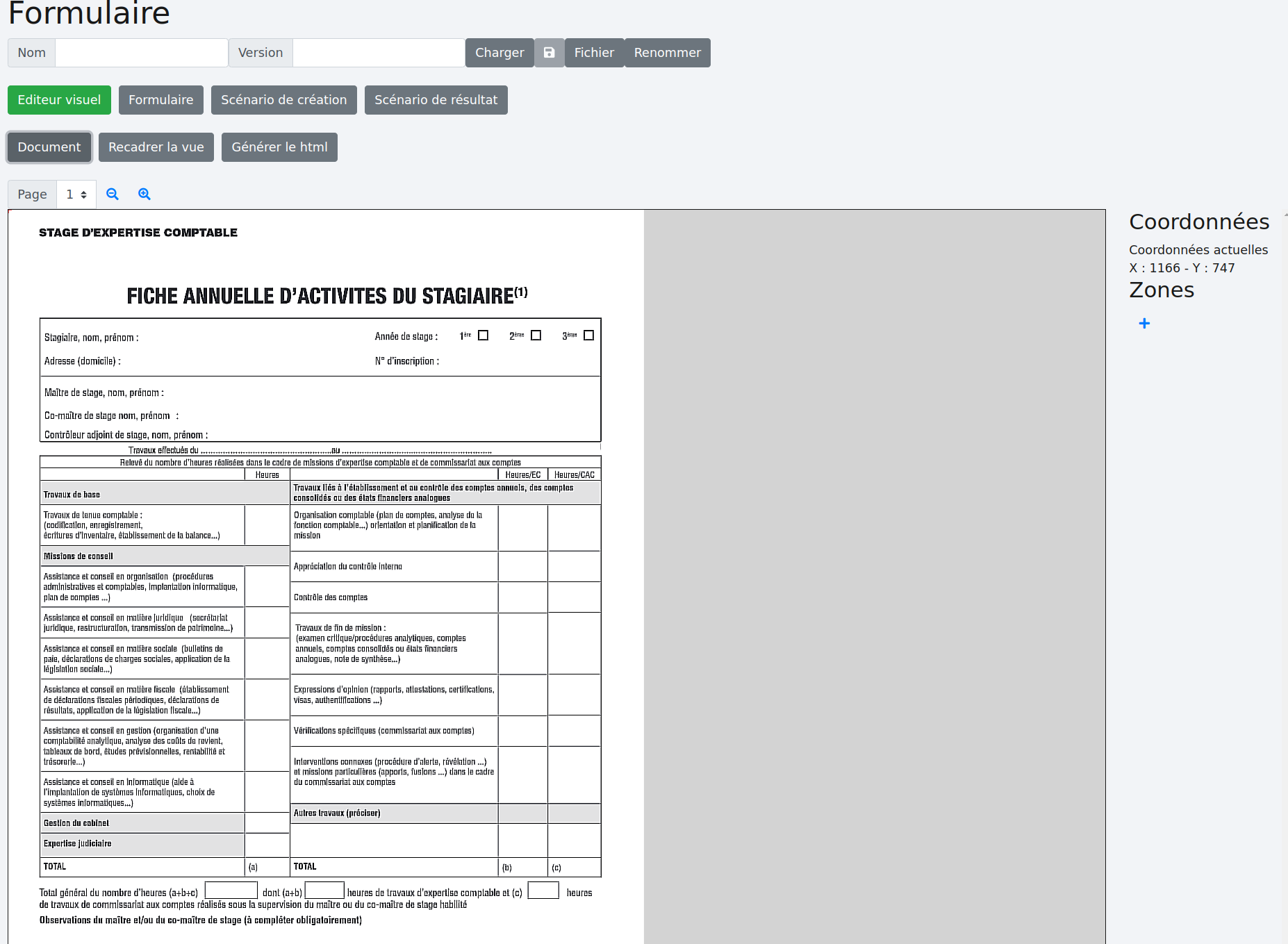 À noter que ce bouton ne peut être positionné que sur le pdf. Si comme dans le cas de la fiche annuelle d’activités, vous ne pouvez lui trouver une place "logique", rassurez-vous, il ne sera là que pour la validation et n’apparaîtra pas sur le document final.