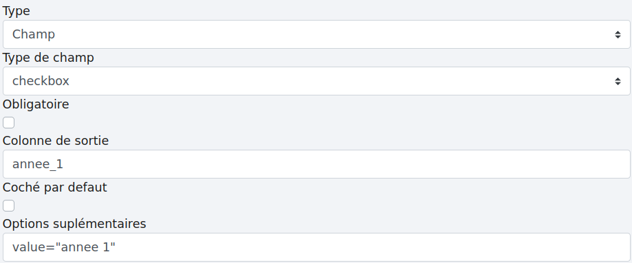 La case "obligatoire" est cochée car cette question attend nécessairement une réponse.