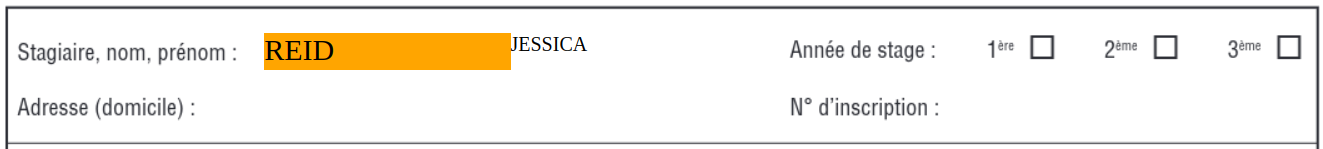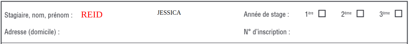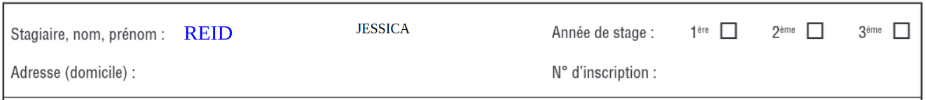 Ce qui nous donne ceci pour l’élément "Nom du stagiaire" :