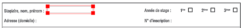 Les paramètres x/y sont également utiles pour aligner précisément deux éléments. Nous avons par exemple, deux éléments "nom du stagiaire" et "prénom du stagiaire". Le second est une copie du premier dont on a changé le nom. Le positionnement a été fait à l’aide de la souris mais on a un petit écart vertical.