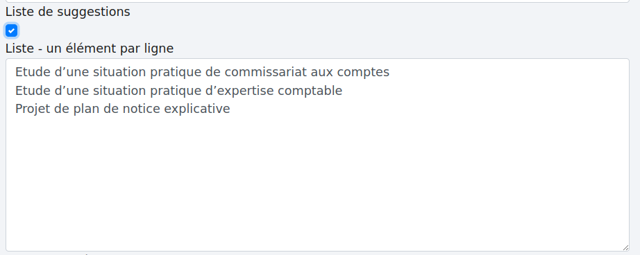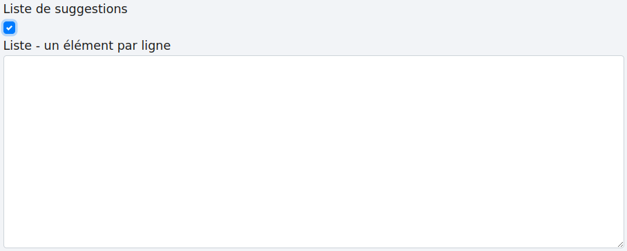 Si l’option "Liste de suggestions" est cochées (sans ajouter de suggestions)