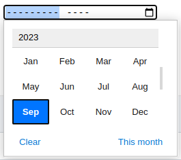 Permet de créer un champ où seuls le mois et l’année seront entrés. Comme d’habitude avec les dates, la présentation varie selon les navigateurs.
