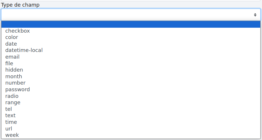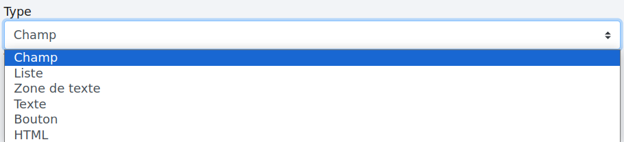 Le premier type d’élément est donc le "champ". Il permet à l’utilisateur de saisir des informations et correspond à la balise HTML <input>. Les options sont nombreuses.