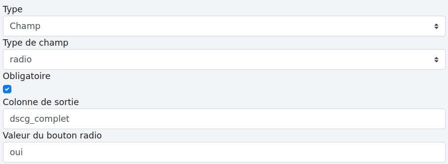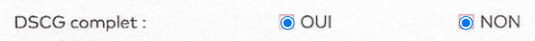Le choix est ici exclusif. Le DSCG est complet ou pas. Il nous faut créer deux zones de boutons radios.